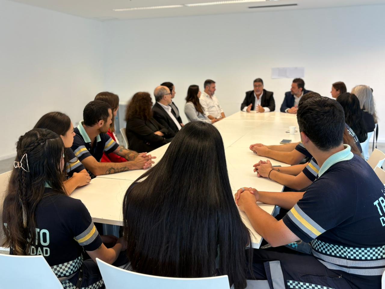 Participaron del encuentro el ministro de Movilidad e Infraestructura, Pablo Bereciartua, junto a Darío Antiñolo, secretario de Tránsito; Leandro Ricciardi, director general del Cuerpo de Agentes de Tránsito; y Pablo Magno, gerente operativo del Cuerpo de Agentes de Tránsito.